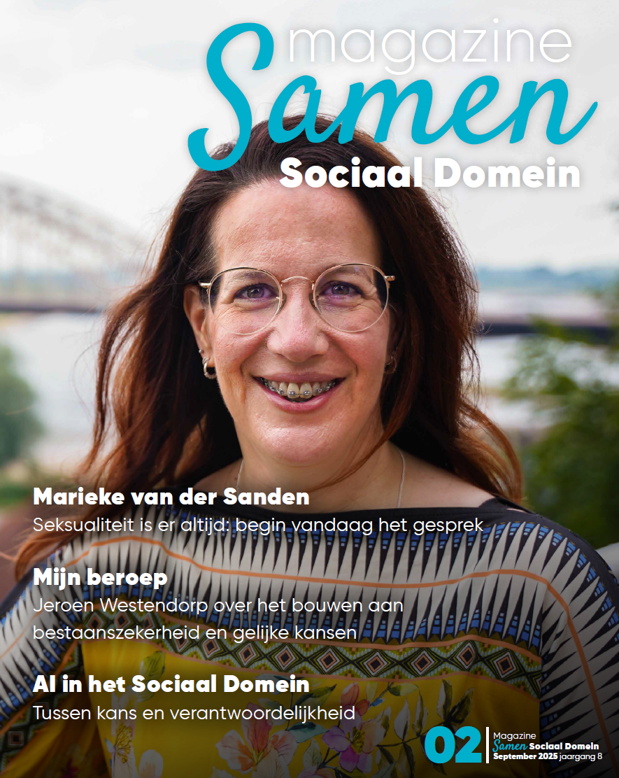 Het magazine verschijnt twee keer per jaar en biedt een heldere blik op wat er speelt in het sociaal domein. Of je nu op zoek bent naar beleidsmatige inzichten of juist praktijkgerichte verhalen van collega’s in het werkveld – Samen Sociaal Domein geeft je houvast én nieuwe ideeën.